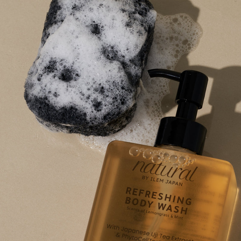 炭ボディスポンジを使用するには、柔らかく膨らむまで水に浸してから、お気に入りのボディウォッシュや石けんと一緒に使い、優しい円状の動きで肌を洗浄し角質除去します